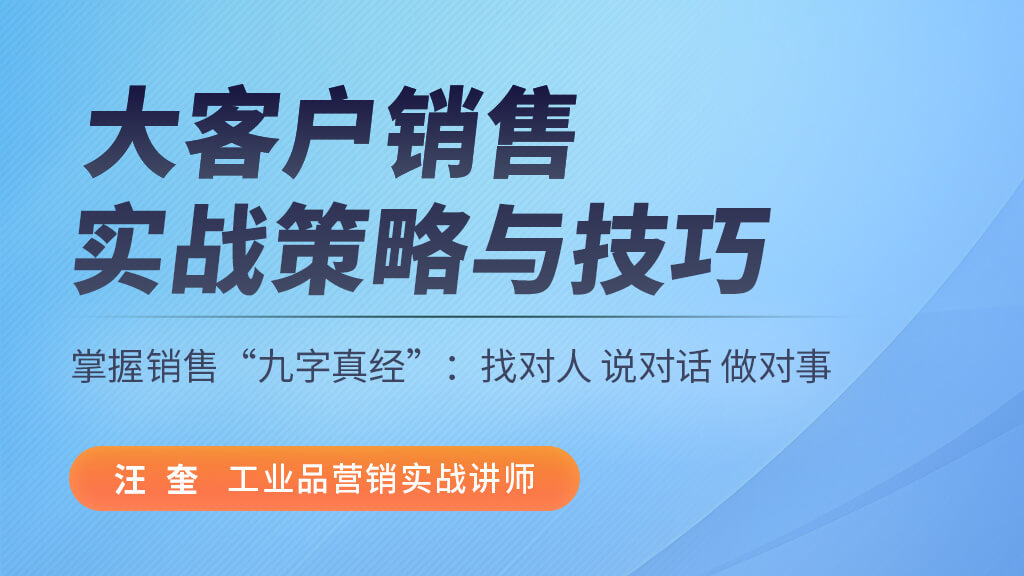 睿选观点 睿选观点本课程为工业品营销人员精心打造的专业培训,聚焦于大客户销售的策略与技巧。核心内容围绕“九字诀”展开:找对人、说对话、做对事。 课程将指导学员分析客户内部决策结构,精准定位关键决策者;强调沟通技巧,教授如何建立信任、改变客户立场。 课程深入讲解了需求分析、价值塑造和情景介绍法,帮助学员掌握激发客户购买欲望的关键技巧;结合实际案例,生动展示如何将产品优势与客户需求相结合,实现高效营销,帮助学员提升销售业绩。