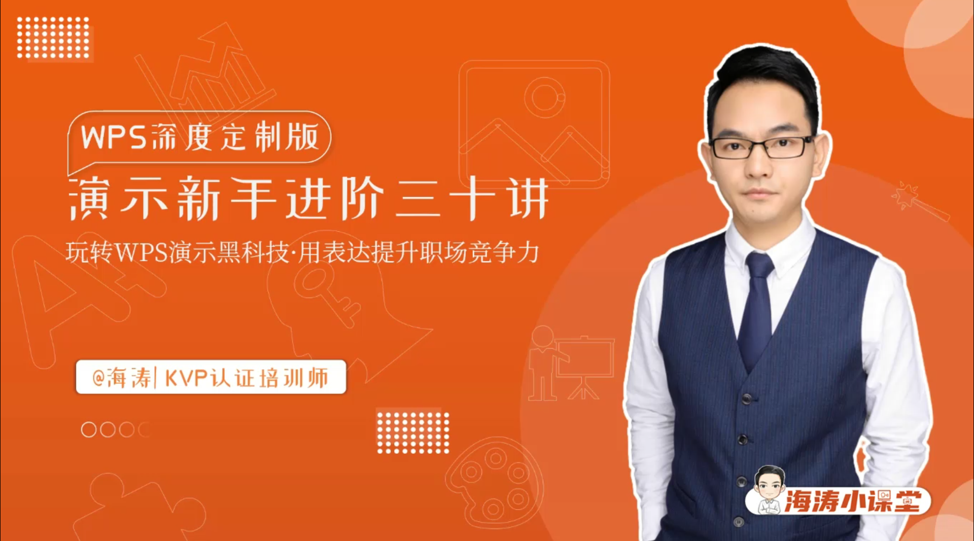 本系列课程基于海涛老师多年的实战工作应用和教学技巧设计开发,从职场WPS演示常见的困境出发,总结了许多思路、操作、呈现方式等方面的套路,有针对性的挑选了数个基于真实工作场景下的应用痛点,从思路—方法—技巧层层展开,精心编排的课程内容直指日常办公技术瓶颈,秉承实用主义,帮助职场人士快速高效地解决职场WPS演示难题,从而大大提高生产力!