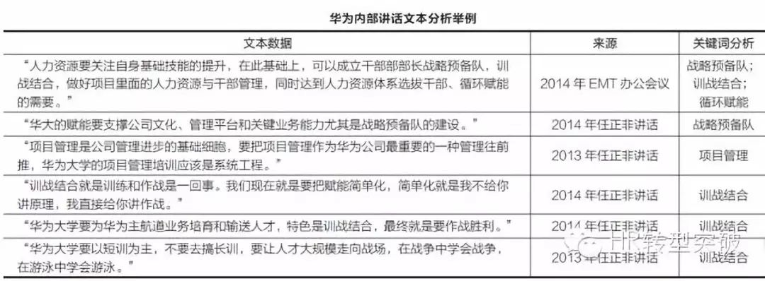 - 一是组织层面的分析,数据主要来源于任正非等人的公司内部讲话;
