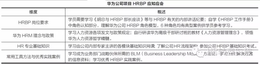 华为公司项目HRBP人才培养的实践