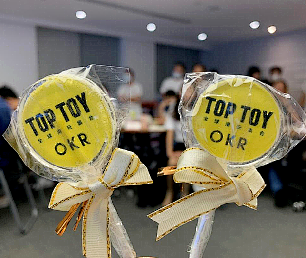 在名创优品刚导入OKR时,同样也少不了动员大会和文化宣传活动,比如易拉宝,漫画,知识卡片,还有棒棒糖的再包装文案。