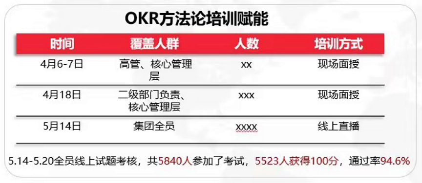 KR2:培训100%覆盖,全员掌握OKR工作法并有效应用;