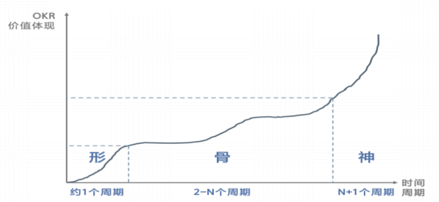 这位管理者的肺腑之言,引发我们思考,令我们对名创优品导入OKR这大半年,进行了更深层次的探究。这番探究让我们有了一个惊喜的大发现:导入OKR,他们是分了三个阶段的,即“形、骨、神”三步法,非常生动形象。