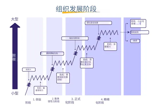 规模是影响组织设计的另一个因素,小型组织通常响应迅速、灵活、扁平、有机且富有创业精神。大型组织通过效率创造价值,拥有全球影响力和品牌,市场更稳定,并且更重视管理者,这导致了不同的组织设计选择。随着组织的发展,它们经历不同的发展阶段。了解公司处于组织生命周期的哪个阶段,有助于发现组织目标和战略与组织结构之间的不一致,它还有助于识别组织可能面临的危机。