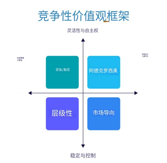 每个组织都有其独特的文化,基于其价值观、假设、信念、态度、情感、故事、英雄、象征、语言和习惯,这些文化最好用“竞争的价值观”框架来总结。该文化框架提出组织中存在多种相互竞争的价值观:灵活性与稳定性,以及内部焦点与外部焦点。这些价值观相互竞争,意味着不可能同时稳定与灵活,也不可能同时兼顾内部和外部。